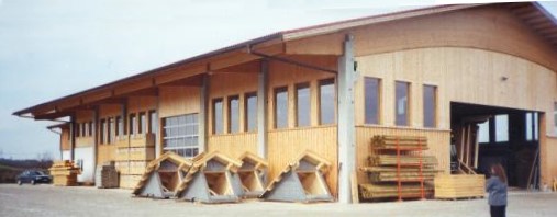 1998 haben wir deshalb am Ortrand von Eberfing in der Egenrieder Straße 1 eine neue Halle (25 x 40 m) mit Fertigungsräumen und Büro erstellt. Auch dies ist natürlich ein “Mayr-Holzhaus” in der bewährten Holzständer-Konstruktion.